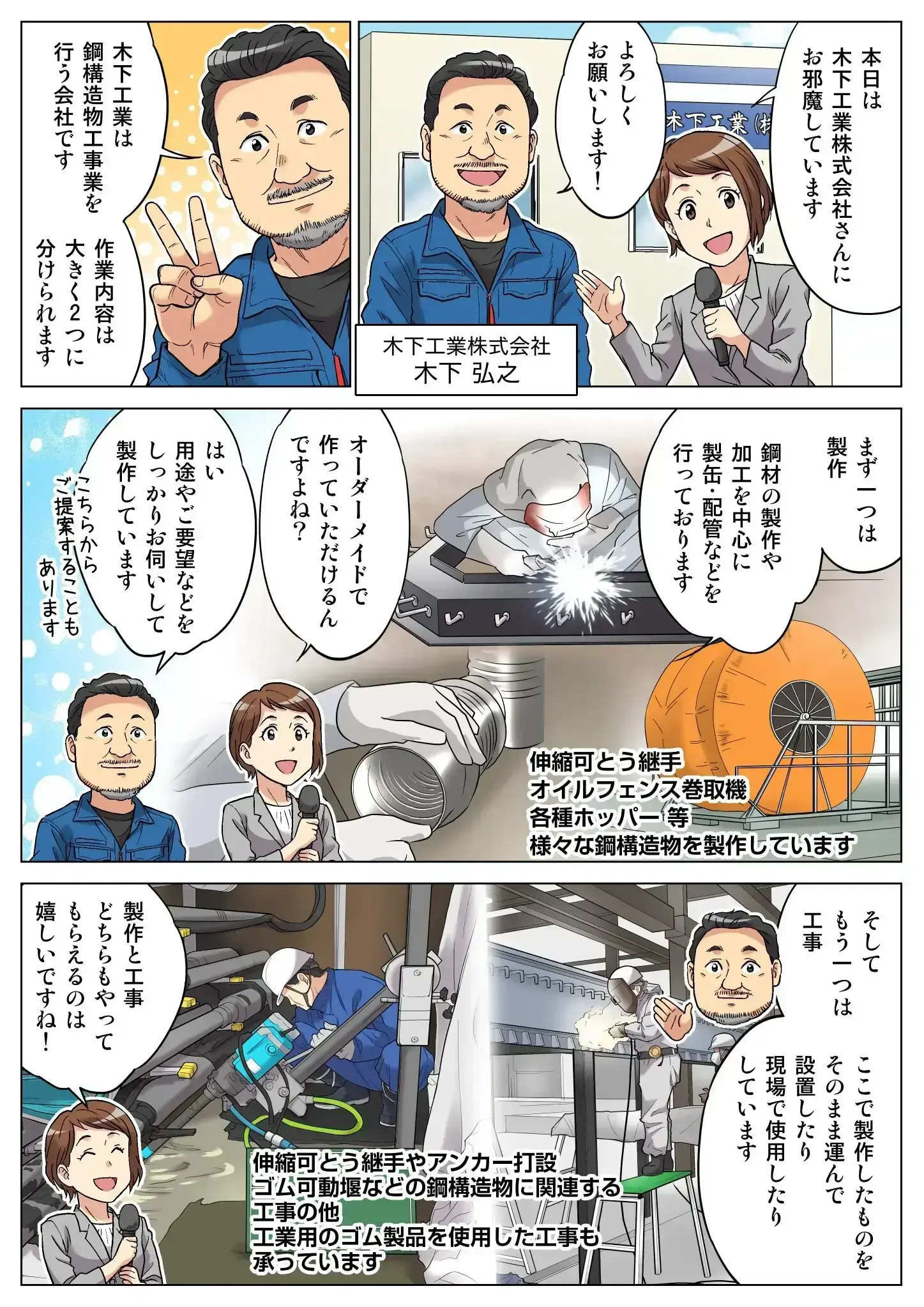 木下工業は兵庫県姫路市を拠点にし、関西エリアで製作から工事まで一貫した対応を行います。お客様のプロジェクトにおいて、製作段階から施工、そしてアフターサポートまでを一貫してサポートし、信頼と品質の確保に努めます。